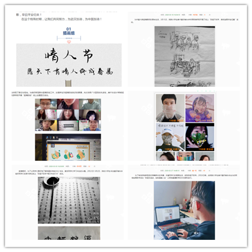 多方动员齐发力,营造全民科学防疫氛围。疫情期间,为了培养同学们的社会责任感,激发员工的创造力,充分发挥老员工的舆论引导作用,加深同学们对国家大政方针的认识与理解,丰富居家生活,郑老师指引学团举办了系列活动,鼓励同学们在确保自身安全的情况下,积极投入到防疫志愿服务工作中去。院团委举办了“众志成城抗疫情——中国加油”系列画展5期,对外展览投稿6次,累计参与同学达500余人次;班级团支部先后累计开展了“科学防疫”系列团日活动20余场;员工社团立足实际开展了“防疫不防学”系列活动9场,实现了“润物细无声”的全覆盖。员工通过参加系列活动,很好的表达了对“逆行者”的敬意,宣传了科学防疫知识,实现了对身边舆论的引导,增强了大家的民族自豪感,反响良好。