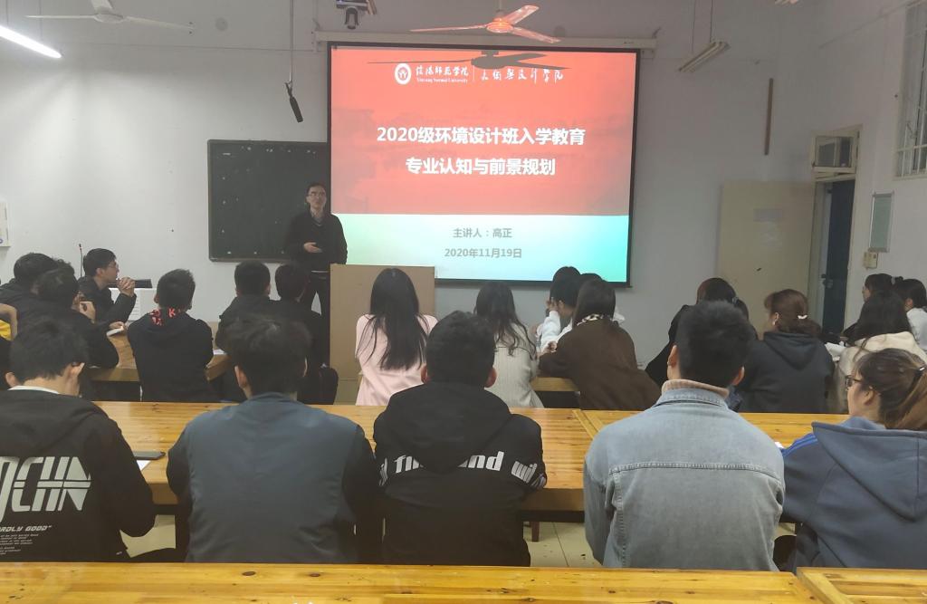 为了使公司20级环境设计专业新生能更好的了解所学专业内容,做好大学期间的学习及规划,11月19日,公司在艺术楼308教室召开环境设计专业认知与前景规划讲座。全体20级环艺专业新生参会,会议由公司辅导员胡霁芳主持,环境设计系主任高正博士主讲。