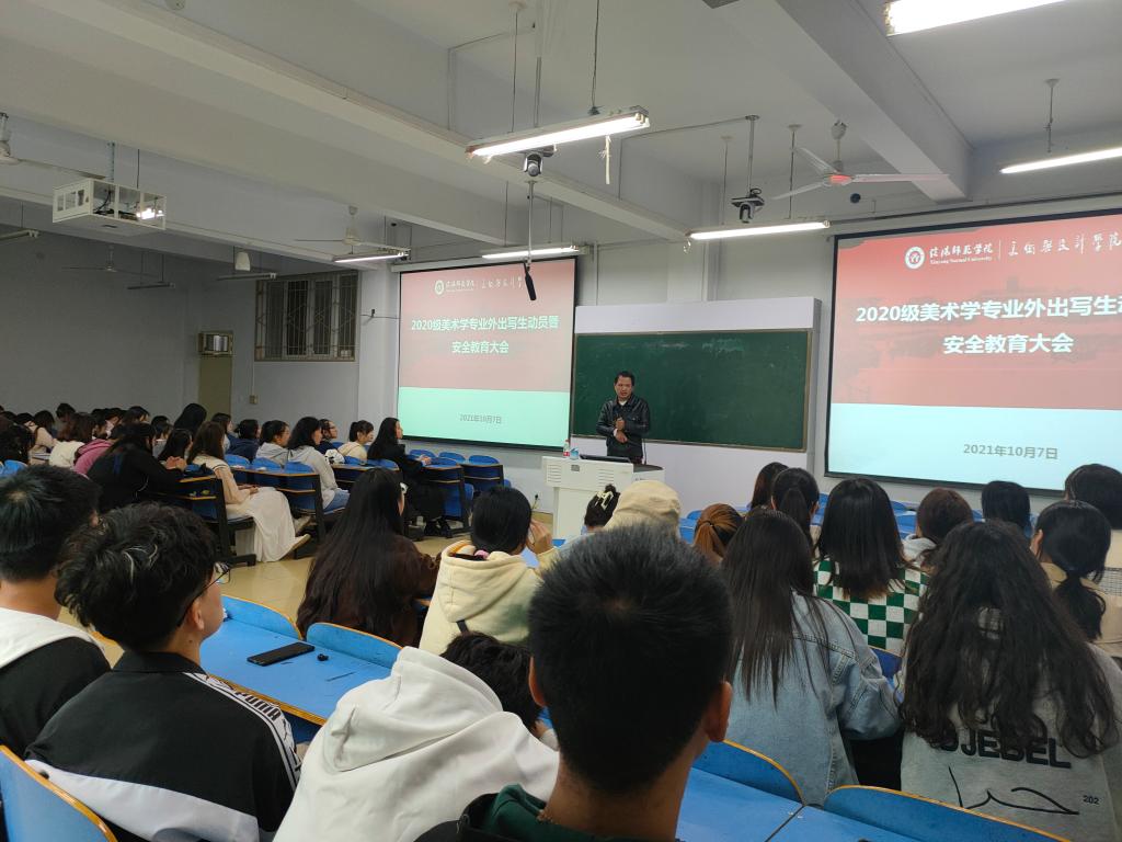 10月7日,公司在艺术楼307室召开2020级美术学专业外出写生动员暨安全教育大会。公司经理邹东升、副经理张江波、带队老师张洪涛、辅导员饶海虹以及2020级美术学班全体员工共同参加此次大会。会议由饶海虹主持。