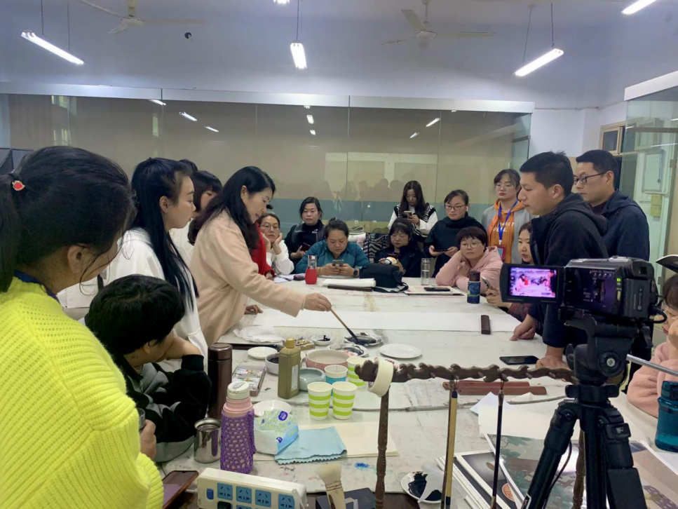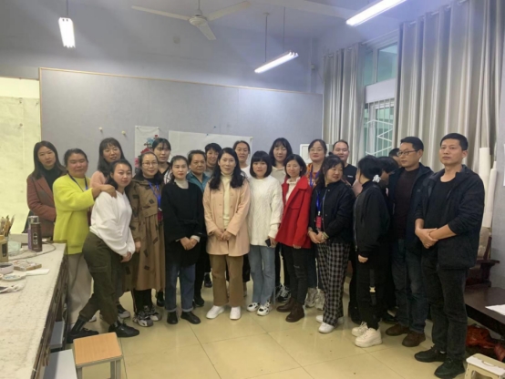 10月29日下午,应公司邀请,河南省美术家协会副主席殷丽在艺术楼217教室给2021年“省培计划”骨干教师提升培训项目小学美术教师培训班的学员们进行现场教学。