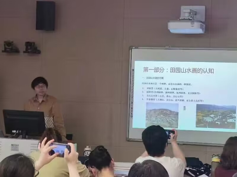 3月9日下午2:30在艺术楼217教室,公司特邀教师曹辉老师为省培学员进行了题为《田园山水画》的专题讲座,让学员们能够从理论到实践进行深入学习,并且近距离观看田园山水画的绘画技法。