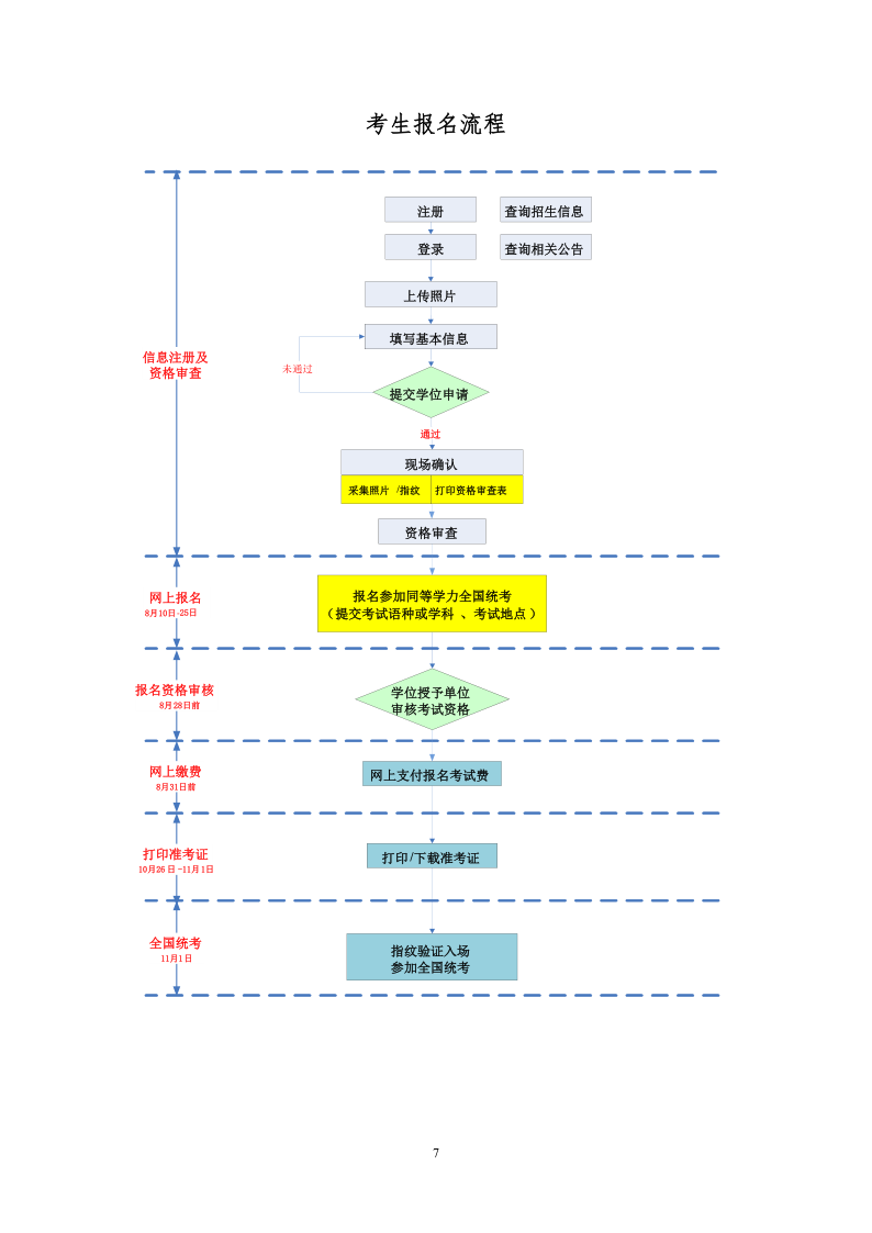 注:2020年全国统考报名时间为:8月10-28日,考试时间为:11月1日。申请人通过教育部同等学力信息平台完成报考、缴费(网上缴费时间:8月12日——8月31日)、下载打印准考证事宜。