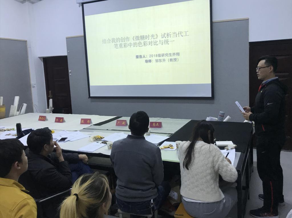 会议伊始,考核组组长分别就此次艺术硕士(美术)专业学位研究生的中期考核内容、考核目的、考核要求作了讲解,并介绍了参加会议的考核组成员。接下来,参加考核的员工依次对自己毕业创作的立意、构图、表现手法、技巧等方面作了陈述,以PPT图文并茂的方式展示了自己的毕业创作完成情况。此外,研究生们还对自己学位论文的完成情况作了汇报,并就自己研究过程中存在的问题、解决的思路以及未来的工作计划作了详细的陈述。考核过程中,考核组老师们认真听取了研究生们的汇报内容,并就每位研究生毕业创作存在的问题做了精彩的点评、给出了详细的解决思路与建议。