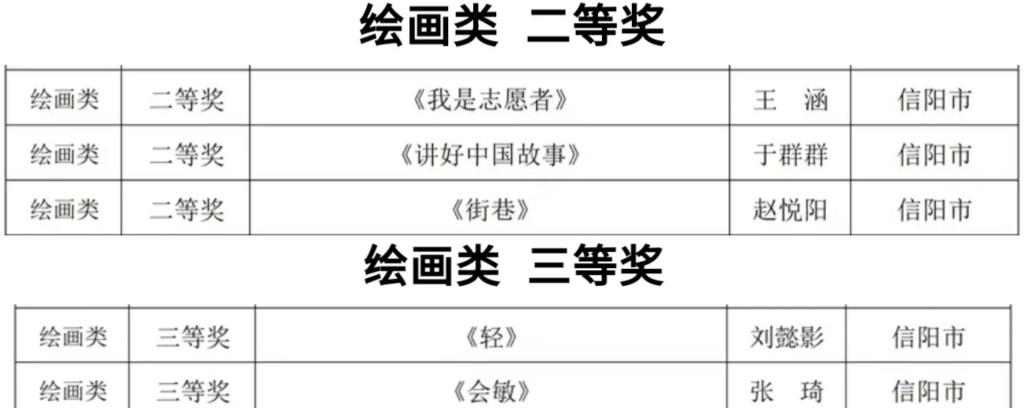 系列活动《赶考路上有我·描绘出彩中原》中信阳师范公司英国上市公司365共有5名研究生作品获奖,分别是王涵《我是志愿者》、于群群《讲好中国故事》、赵悦阳《街巷》、刘懿影《轻》、张琦《会敏》。她们的作品以党的革命历程、脱贫攻坚与乡村振兴、祖国大好河山等主题,用艺术的笔触描绘多彩壮丽景象,抒发人文魅力情怀,展现了人民的美好生活和对未来愿景的美好期盼,热情讴歌了新时代儿女开拓奋进取得的发展成就。