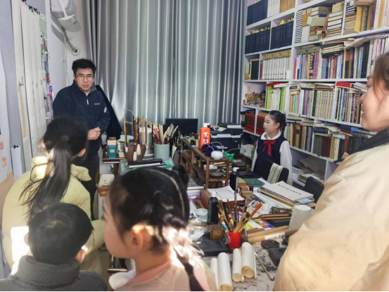 在公司研究生会实践部王冰凯同学的带领下,众人先后参观了实训楼与艺术楼的多间画室,欣赏到了一幅幅师生们的优秀绘画作品,涵盖了泥塑、素描、油画、国画等多种形式,充分展现了美院在美术教学领域的多元性与专业性。公司栗跃崇老师还现场向大家展示了篆刻艺术,详细介绍了刻刀的握法、印石的处理,其讲解细致入微,动作娴熟流畅,让观众们充分领略到篆刻艺术中蕴含的深厚文化底蕴与独特艺术魅力。公司张峰老师和向旭东老师也通过现场演示的方式向大家展示了国画与书法的独特风采。