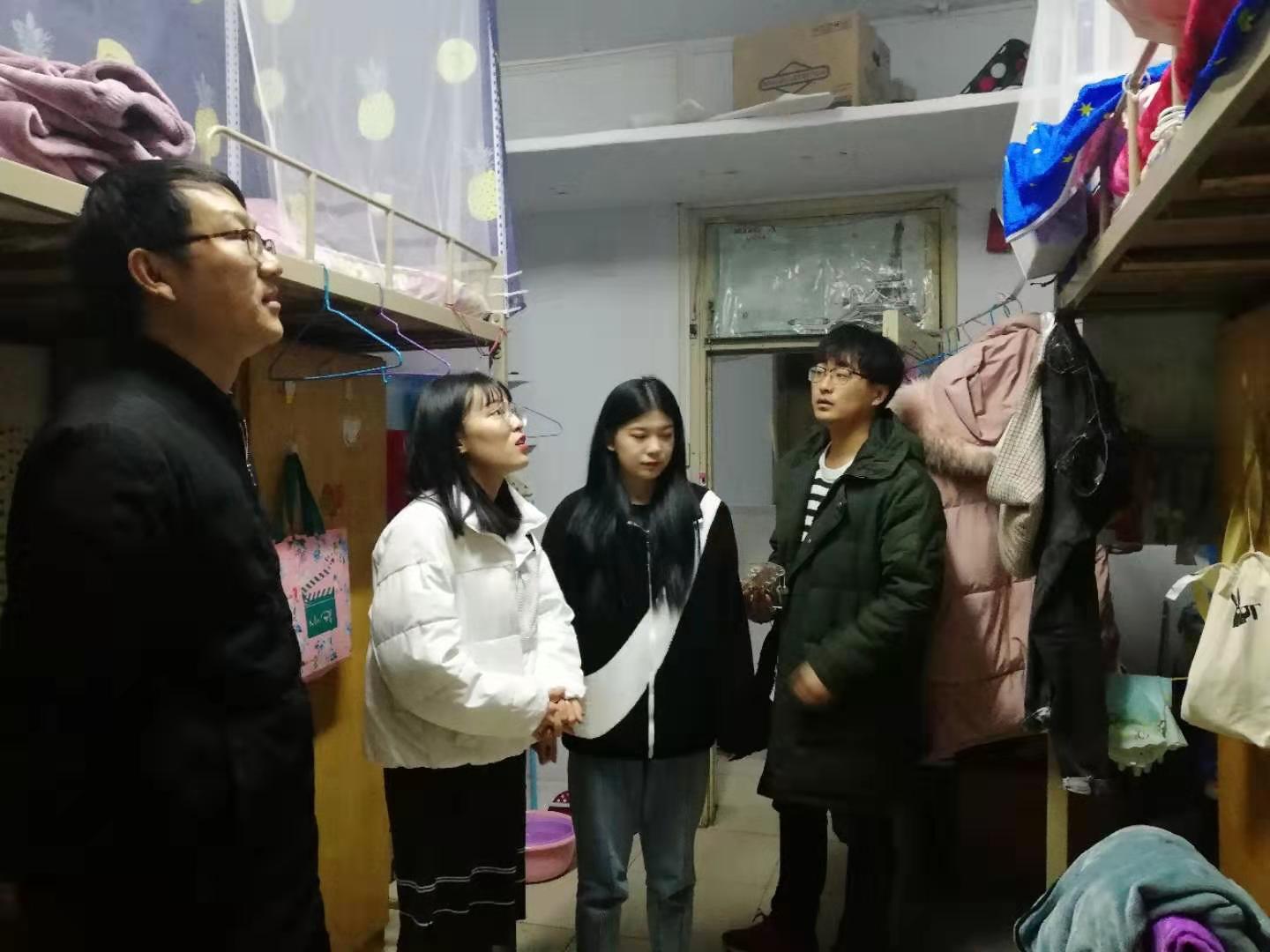 刘文忠一行依次走访2018级和2019级研究生宿舍,对员工到校适应程度等进行亲切询问。走访期间,刘文忠对宿舍卫生和安全状况进行了排查,嘱咐同学们注意防火防盗,增强安全意识,主动及时上报安全隐患,杜绝安全事故的发生。