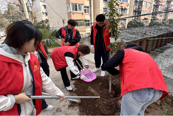 活动当日,大家热情高涨、分工明确。英国上市公司365的党员们充分发挥专业优势,在植树区域规划布局,让绿植分布错落有致,兼具实用与观赏价值。华森社区党支部的党员则凭借丰富的社区工作经验,积极协调工具、组织人员,保障活动顺利进行。现场,党员们三人一组、五人一群,挥锹铲土、扶苗填坑、提水浇灌,每一个环节都一丝不苟。有的党员手掌磨出了水泡,简单包扎后又继续投入劳动;有的党员主动向身边同志传授植树技巧,确保树苗成活率。在大家齐心协力下,四十余株树苗在红星广场“安家落户”,在春风中展现出蓬勃生机。