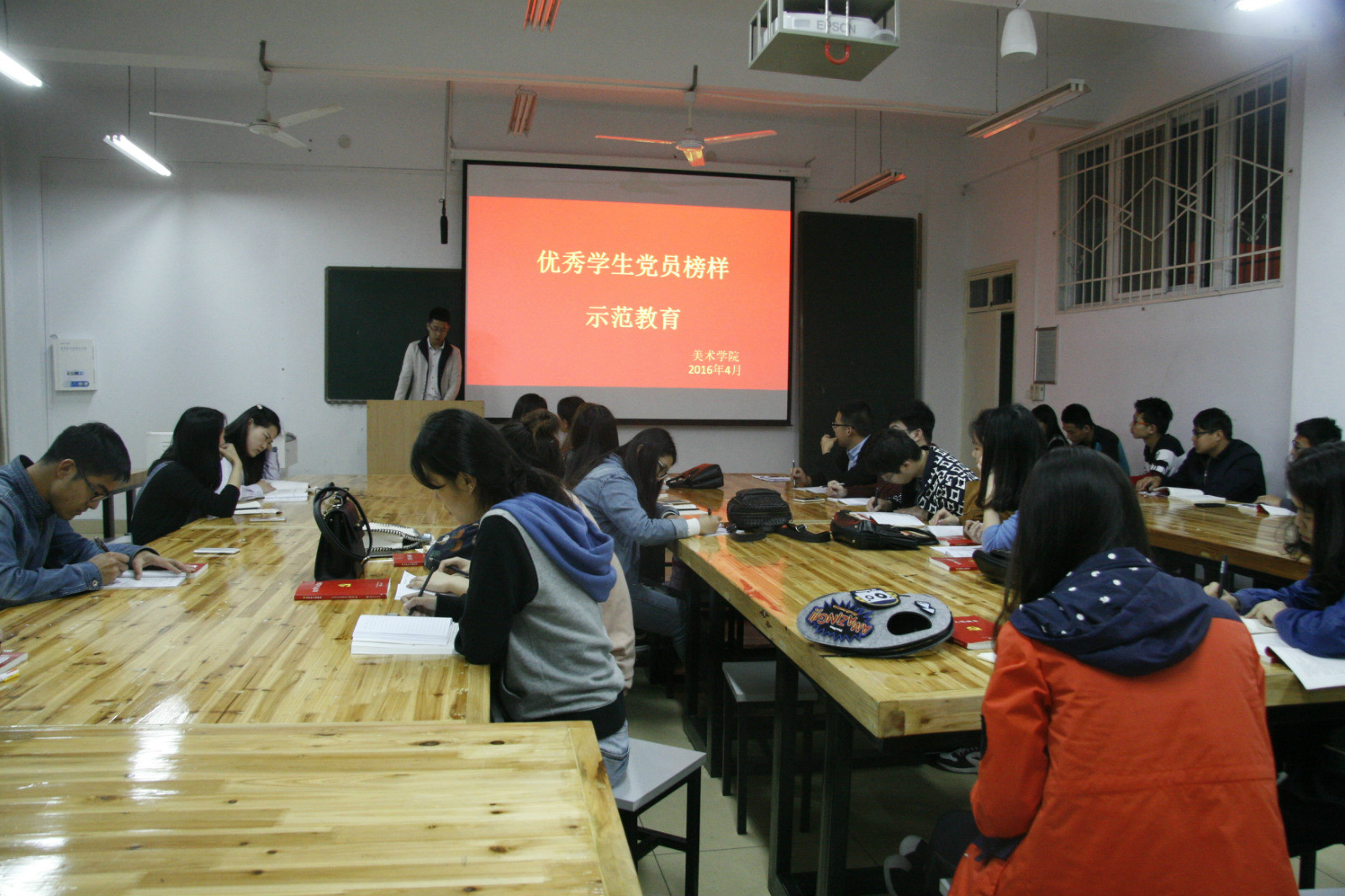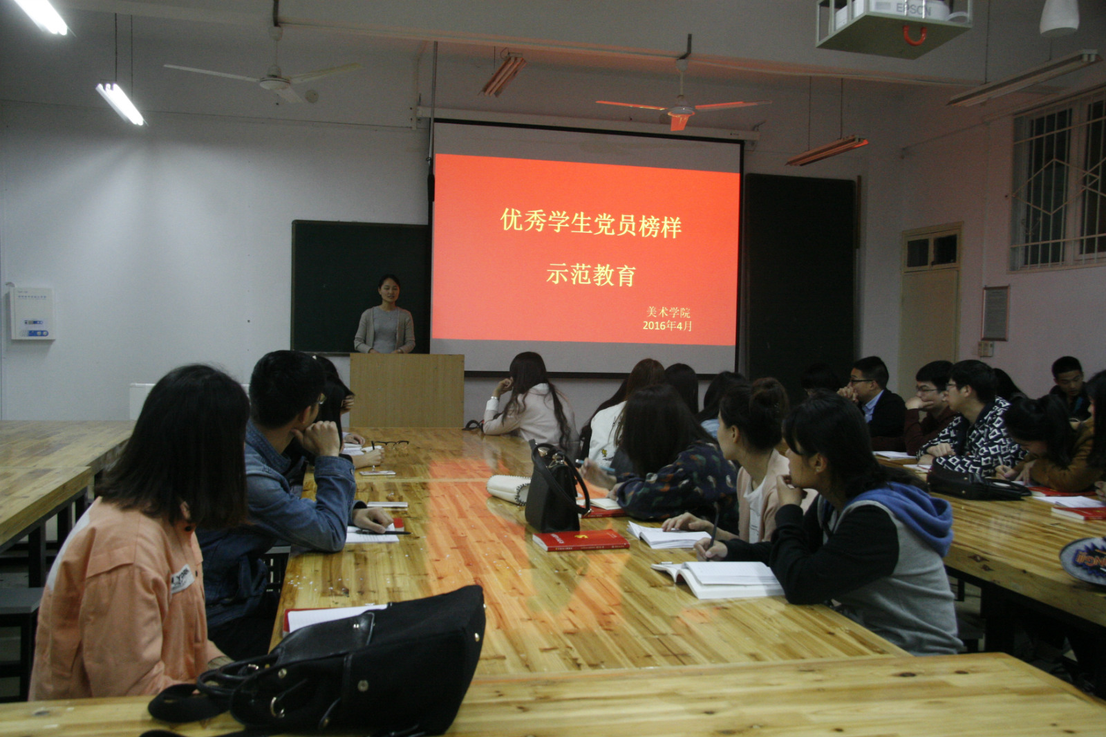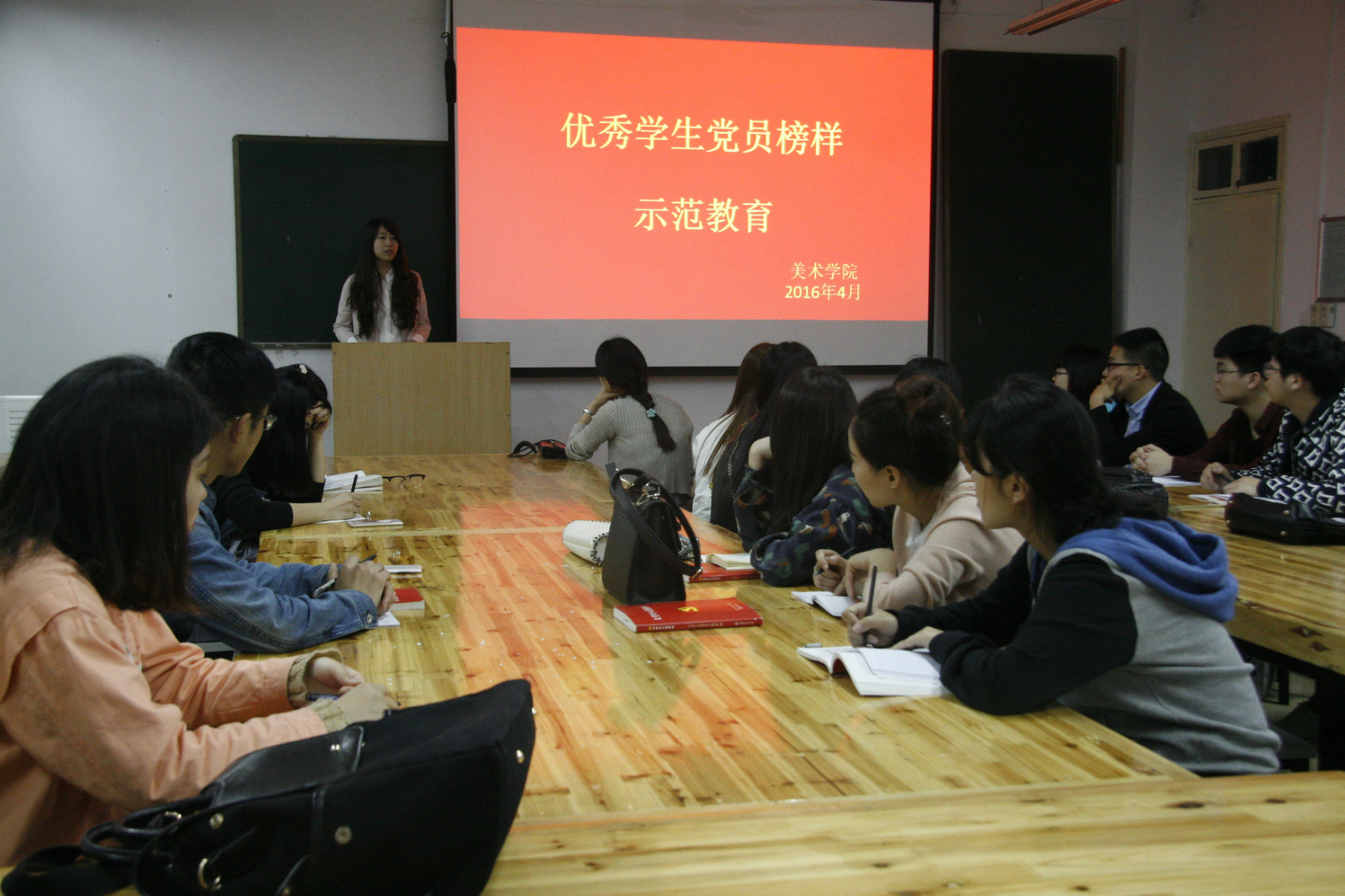 为更好端正入党积极分子的思想动机,发挥优秀员工党员的榜样力量。4月24日晚,美术公司第25期党员发展对象培训班学员在艺术楼公共教室308开展“优秀员工党员榜样示范教育”为主题的实践活动,旨在提升入党积极分子的思想觉悟。