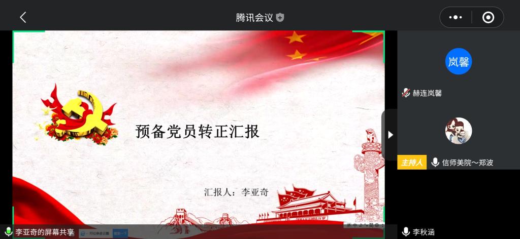 会议伊始,由各党支部书记简单介绍会议流程及注意事项、清点员工党员到会情况。随后会议严格按照相关流程展开,各预备党员以线上共享PPT的形式汇报在预备期的思想、学习、生活等方面的表现情况。接着,入党介绍人介绍预备党员在预备一年期间的表现,表明自己意见,以此流程,各预备党员依次作答。紧接着,进行正式党员的讨论及线上匿名投票表决,各支部书记宣布表决结果并进行总结发言,希望各位党员同志以此为契机,更加刻苦,更加努力。会议在热烈的掌声中结束。