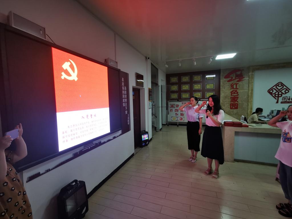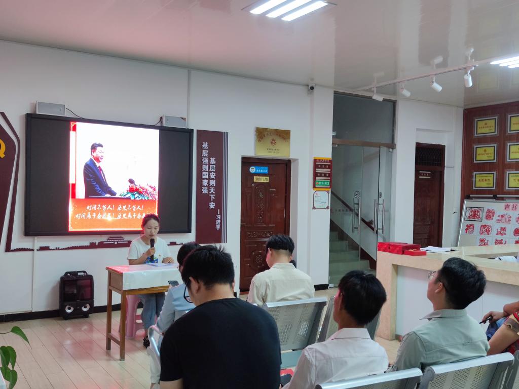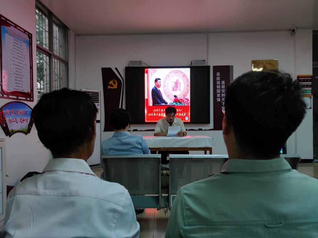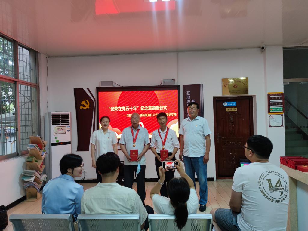 华森社区党支部书记周晓燕、信阳木工机械有限责任公司社区管理党支部书记冯传前在全体党员的见证下,为杨大德、徐洪久、陶维轩颁发了“光荣在党五十年”纪念章,号召大家积极向老党员学习,坚守入党初心。在公司教师余艳凯带领下,全体党员面向党旗、举起右拳,庄重的重温了入党誓词,再一次接受了心灵的洗礼。马克思主义公司教师郑晨霞、研究生鲁桐君、汤欢带领全体党员进行了习近平金句研学活动,分别以每日金句“大别山革命精神是我党的精神财富”“江山就是人民、人民就是江山,打江山、守江山,守的是人民的心。”“不断满足人民对美好生活的向往”为引和大家分享了学习心得,赢得阵阵掌声。参会人员还一同收看了《党章》解读视频,参与了社区“金牛达人”表彰活动。