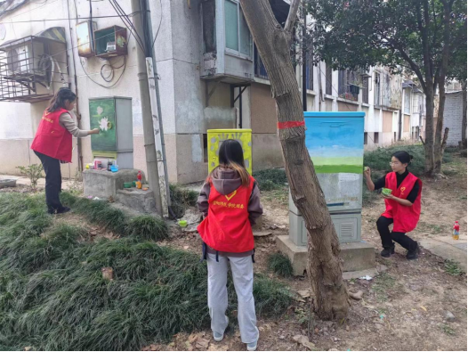此外,上午9点16名党员及青年志愿者一早来到华森社区,提起画笔,用自己的专业特长去美化社区电表箱,提升社区文化内涵。每一幅图画不仅仅是图画,还是一种声音,传达了志愿者对社区“爱”的声音。志愿者们一点一勾一提,经过一天的努力,一幅幅有声有色的“春景”出现在社区的电缆箱上,平时没人去观览的电缆箱就在一个下午突然走红,成为了社区的“新兴红人”。