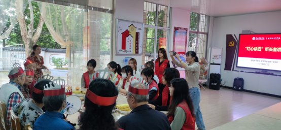 最后,志愿者们来到老人身边,听老人们讲述自己年轻时响应国家号召,从大城市西迁到信阳扎根木机场艰苦的奋斗故事,大家被老一辈不怕艰苦、不惧困难的精神深深折服。这场动人的思政课实践,震撼了同学们的心灵,让大家体会到盛世来之不易,吾辈自当珍惜。