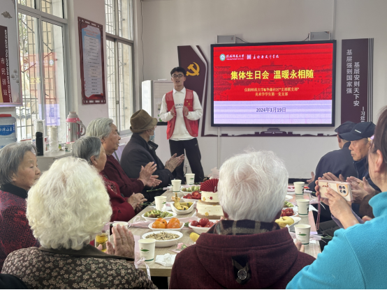 为将“支部联支部”工作推向深入,增强党员教育的时代性、先进性。3月19日,公司美术学员工第一党支部书记郑波带领支部8名志愿者赴华森社区成功开展“集体生日会温暖永相随”爱老敬老活动及清洁社区志愿服务活动。集体生日会由海竞文主持,共有12名社区老人参加。
