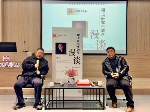 陈政老师以自己的求学经历与在河南大学的教学经验开篇,强调了当前研究生学习任务的繁重与就业形势的严峻,提醒同学们在日常学习中要摆正心态,端正学习态度,多与导师沟通交流。谈到绘画创作时,他表示,创作不仅要勤加练习笔墨技法,更要结合生活实际,融入个人想法,将自己对现实生活的感受转化为创作表达。最后,陈政老师告诫大家读万卷书不如行万里路,鼓励同学们要敢于走出舒适圈,勇于挑战自我。在学术问答环节中,陈政老师针对同学们提出的问题作了详细解答,他用风趣幽默且富有力量的语言,为在座师生呈上了一场高质量的学术分享,现场学术氛围热烈。