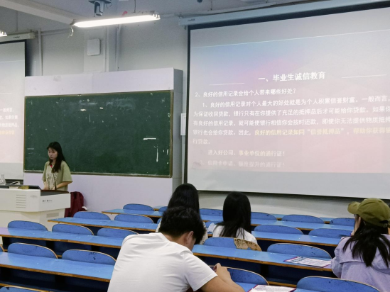 会上,赵倩首先强调了诚信的重要性,通过生动的案例和深入的分析,让毕业生们深刻认识到诚信不仅是个人品质的体现,也是未来职业发展中不可或缺的因素。同时,还向同学们普及了基本的征信知识,鼓励大家珍惜个人信用,积极履行社会责任和义务。