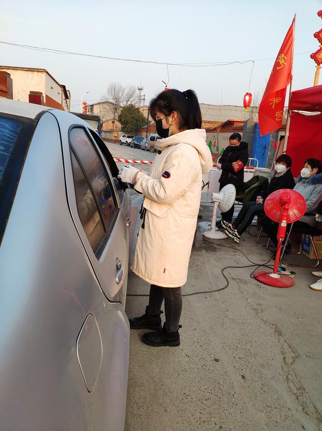 1月28日河南省开封市禹王台区南郊乡孟坟社区开展疫情防控工作时,她义不容辞报名参加,成为第一批投入疫情工作的人员,她服从党组织的领导和安排,在进行自我保护的同时全身心的投入社区防控疫情的各项工作中。每天早上7点准时到达帐篷中,对进出人员进行体温测量消毒和统计工作,将每日的疫情工作进展进行统计整理,为住户科普新型冠状病毒防疫知识,协助社区居委会人员对350余人进行上门逐一排查、登记工作,巡查禁止区民聚群。每天看到疫情的增长数据,内心有过恐慌,但是面对严峻的形势,她克服了内心的恐惧,与社区人员共同参与到防控工作中,每天虽然辛苦但是很充实,她表示要用自己的实际行动为社会贡献一份力量。