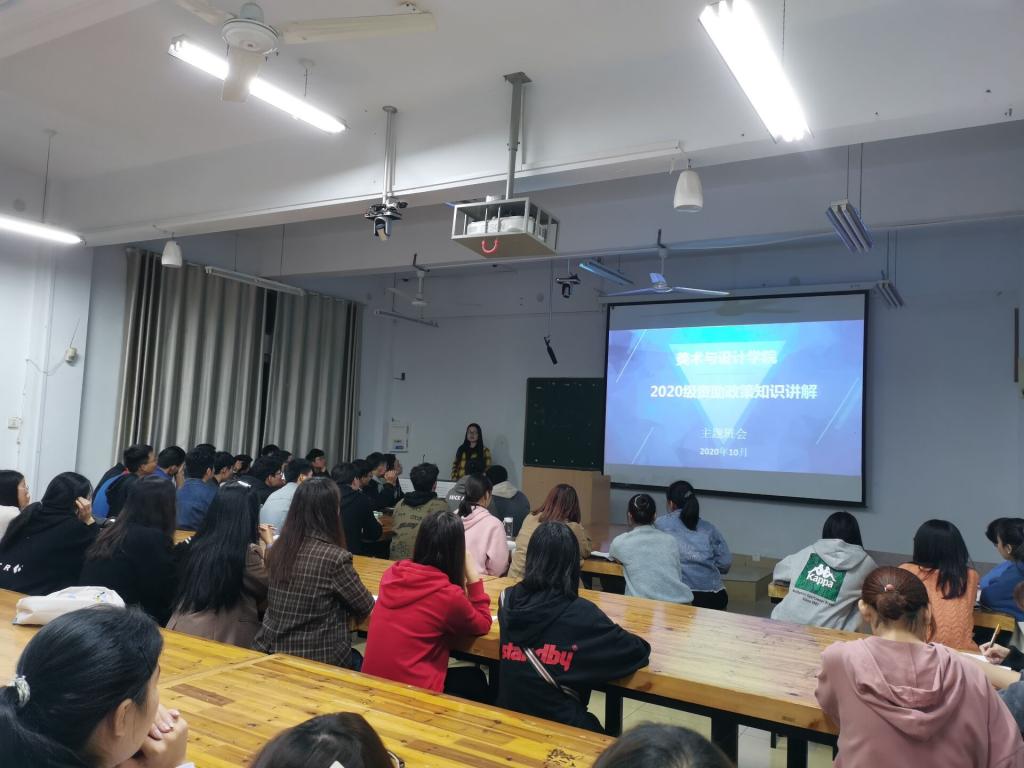 为了使2020级新生进一步地了解国家资助政策,公司10月29日晚于艺术楼308教室召开了新生资助政策宣讲会,公司辅导员胡霁芳主持会议。
