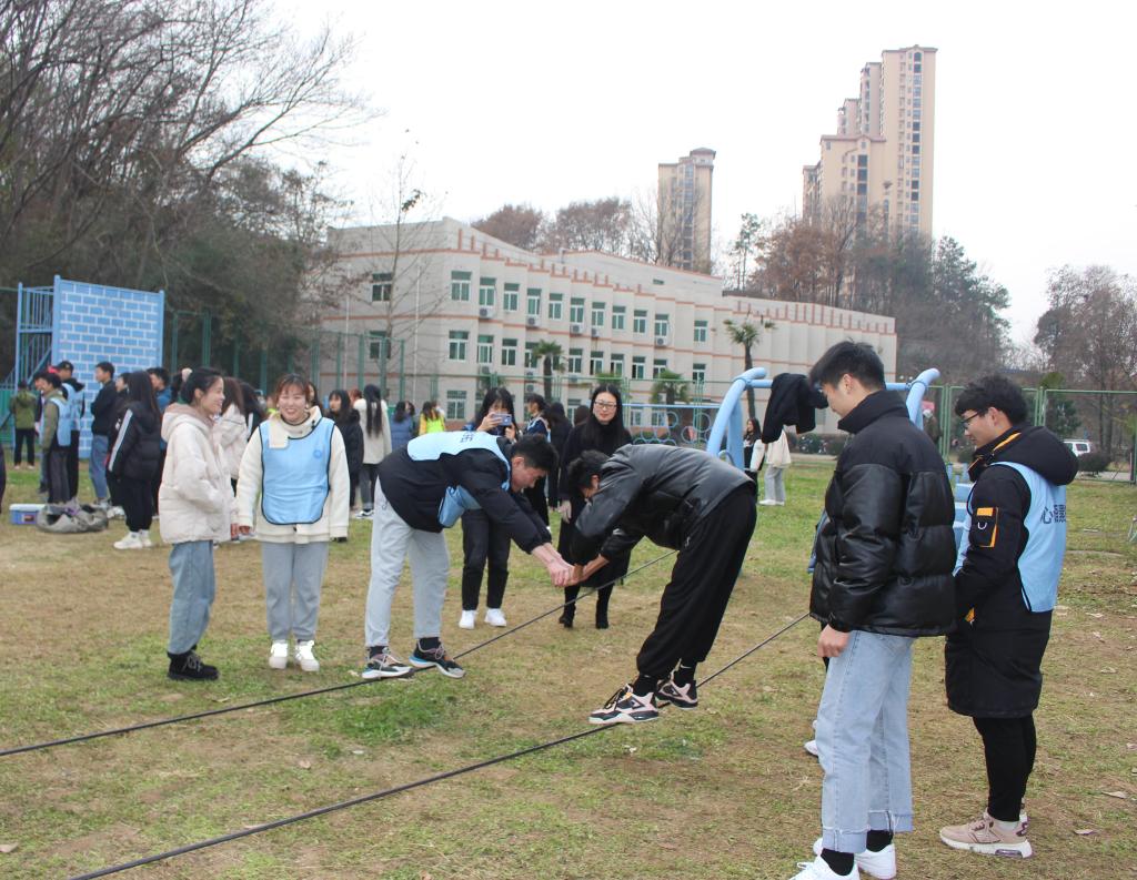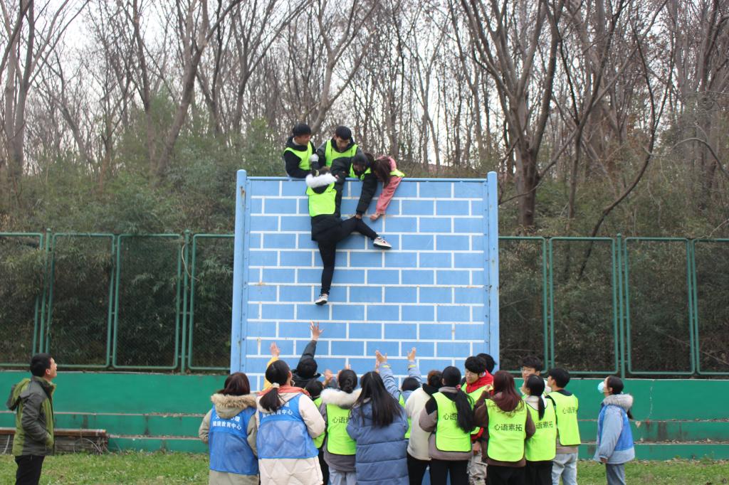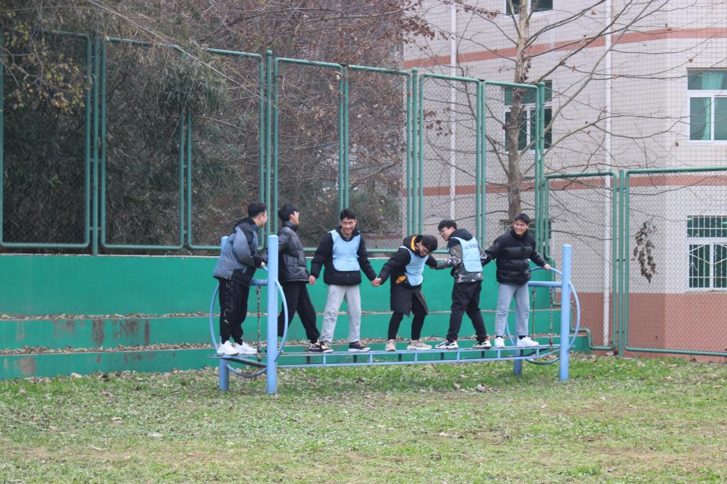 活动前,指导老师将同学们分成三组进行训练活动,并为同学们介绍训练项目的规则和注意事项。接着比赛正式开始,首先进行的是“珠行万里”,游戏中同学们默契配合,互帮互助,齐心协力地完成了此项活动。接着是“高空断桥”项目,同学们勇于挑战,奋力向前迈,展现了积极向上的精神。在“毕业墙”项目中,充分体现了同学们的团队协作力,你跃我拉,不断突破自我,一次次的成功都使在场人员激情澎湃。 现场气氛十分热烈,每位同学都投入了全身心的精力,不仅丰富了课余生活,也增强了班级凝聚力。活动最后,师生们进行了合影留念,此次活动圆满结束。
