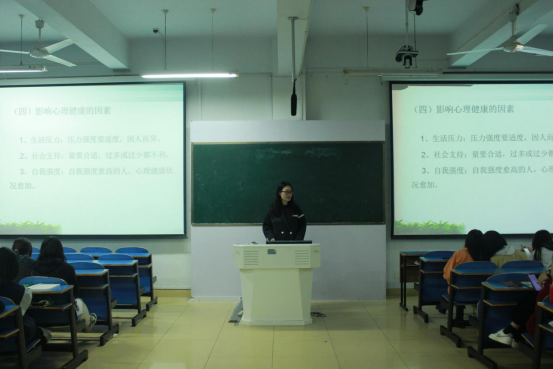 课堂上,胡霁芳向同学们详细普及了老员工心理健康基础知识,并结合相关实例和视频进行具体分析,帮助同学们更直观、更深入地了解心理问题。胡霁芳向同学们强调,在保持浓厚的学习氛围的同时,也要保持乐观的情绪和积极的心境,对未来充满信心与期待,掌握心理调节的方法,提高心理承受能力。最后,她向同学们宣传心理咨询的过程与积极作用,对如何预约公司心理健康咨询进行补充说明。