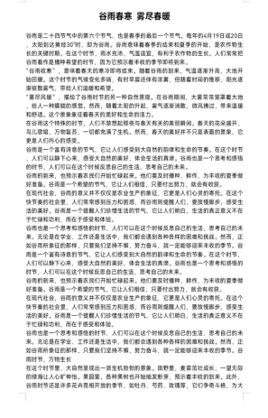 为弘扬中国传统文化,公司新媒体部门于4月18日至20日在线上成功举办了“谷雨收寒,雾尽风暖”主题征文活动。活动旨在通过文字深入挖掘谷雨节气的文化内涵,并推动传统文化的传承与发展。