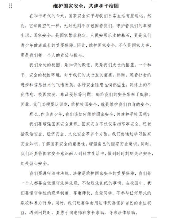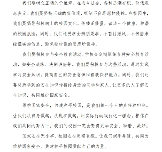 为普及国家安全知识,提升师生安全意识,公司员工会宣传联络部于4月18日在线上举办了“维护国家安全,共建平安校园”主题征文活动。