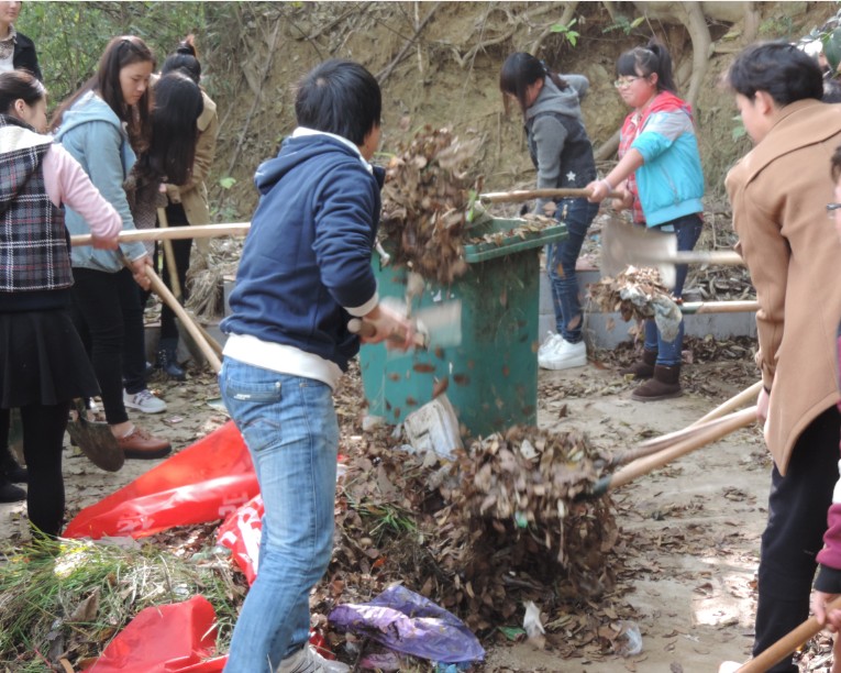 学员们于社科楼领取劳动工具后前往北泽园,任务分配过后,在小组长的带领下学员们马上投入到实践活动中,由于现场的劳动条件简陋,大家废物利用,剪开废旧条幅,利用条幅将树叶收集起来运出,整个实践活动的分工明确,大家互帮互助,轮流倾倒垃圾,清扫中,女生们也不逊于男生,连抬垃圾的重活也少不了女生的身影,原本堆积成小山的树叶和垃圾在学员们努力下终于清扫干净,一位学员这样说道:“虽然实践活动很累,但作为思想积极的老员工,能够为自己的校园环境建设付出努力我们还是很高兴”。