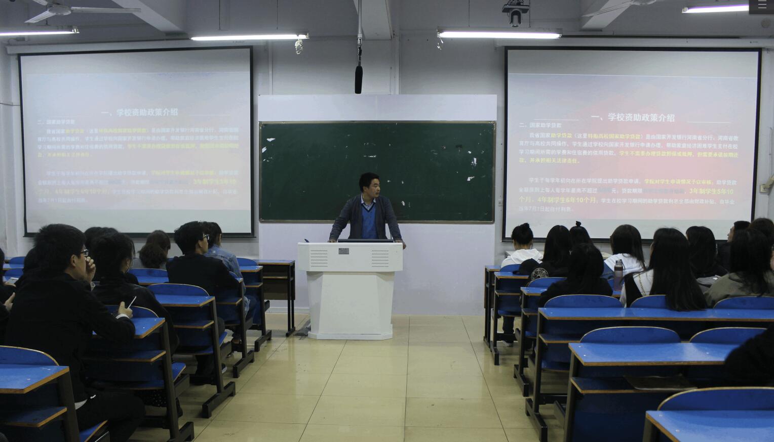 会上,郑波以PPT形式系统地向同学们介绍了公司现有的资助政策、资助项目申请流程、校园地贷款还款流程,并强调了按时还款的重要性。随后,重点讲述了关于毕业生诚信教育的问题,提醒同学们享受国家资助后要按时还贷、提前还贷。同时,希望同学们走出校园后要积极宣讲国家资助政策。