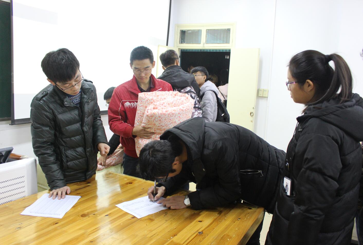 班会围绕公司的资助政策体系、"寒冬送温暖"暖我心、我有心语向师院三个部分展开。施远首先向同学们介绍了公司的资助政策体系,体系包括奖、助、贷、勤、俭、免几个方面,方便家庭有困难的员工的校学习生活。随后,施远亲手将棉被和棉褥一一送到员工的手上,并嘱咐同学们天气转冷,要注意防寒保暖,员工们的脸上都挂着笑容,对公司、老师的亲切关怀表示感谢。最后,同学们畅所欲言,纷纷发表了领到棉被棉褥后的感受,现场气氛温馨愉悦。