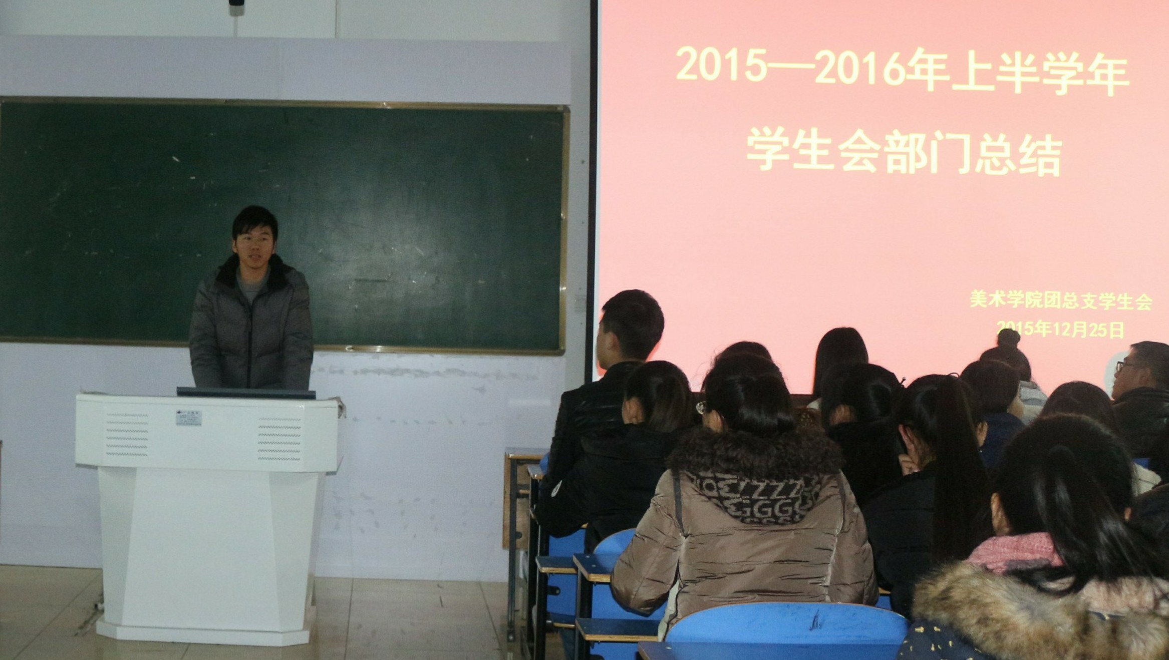 12月25日晚,美术公司团总支员工会年度总结大会在艺术楼307教室成功召开。本次会议美术公司员工会全体成员参加了本次会议。会议由员工会副主席贾珍主持。
