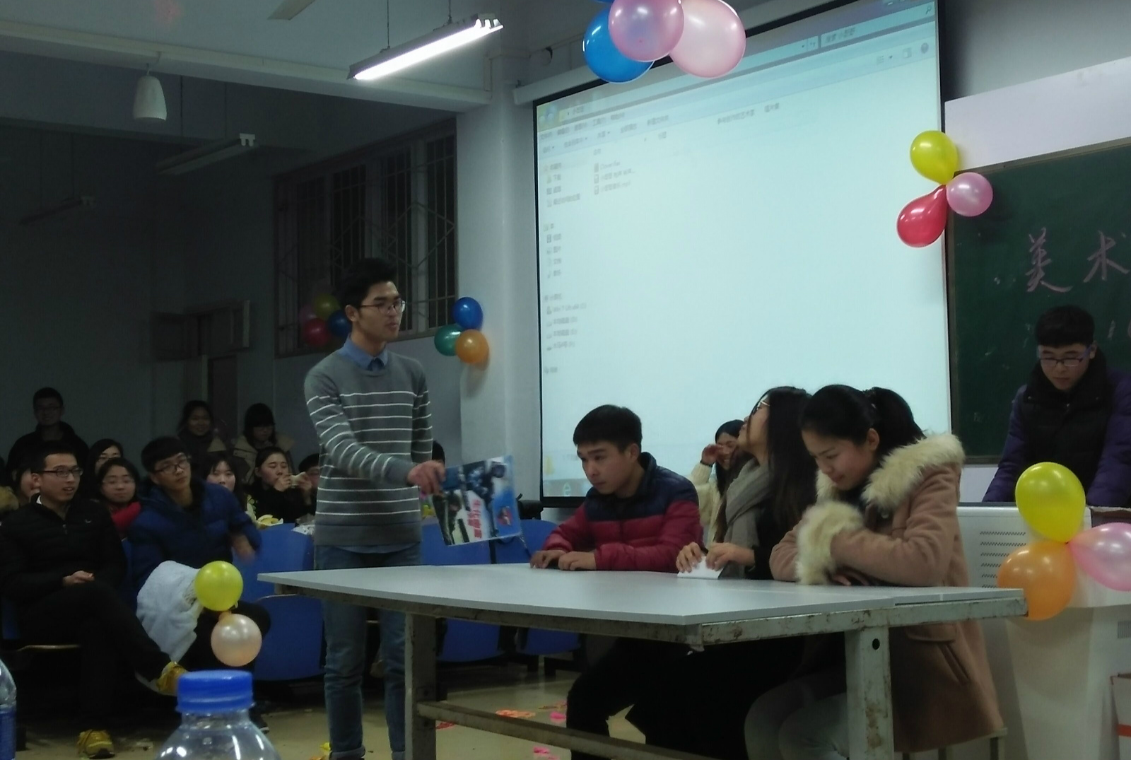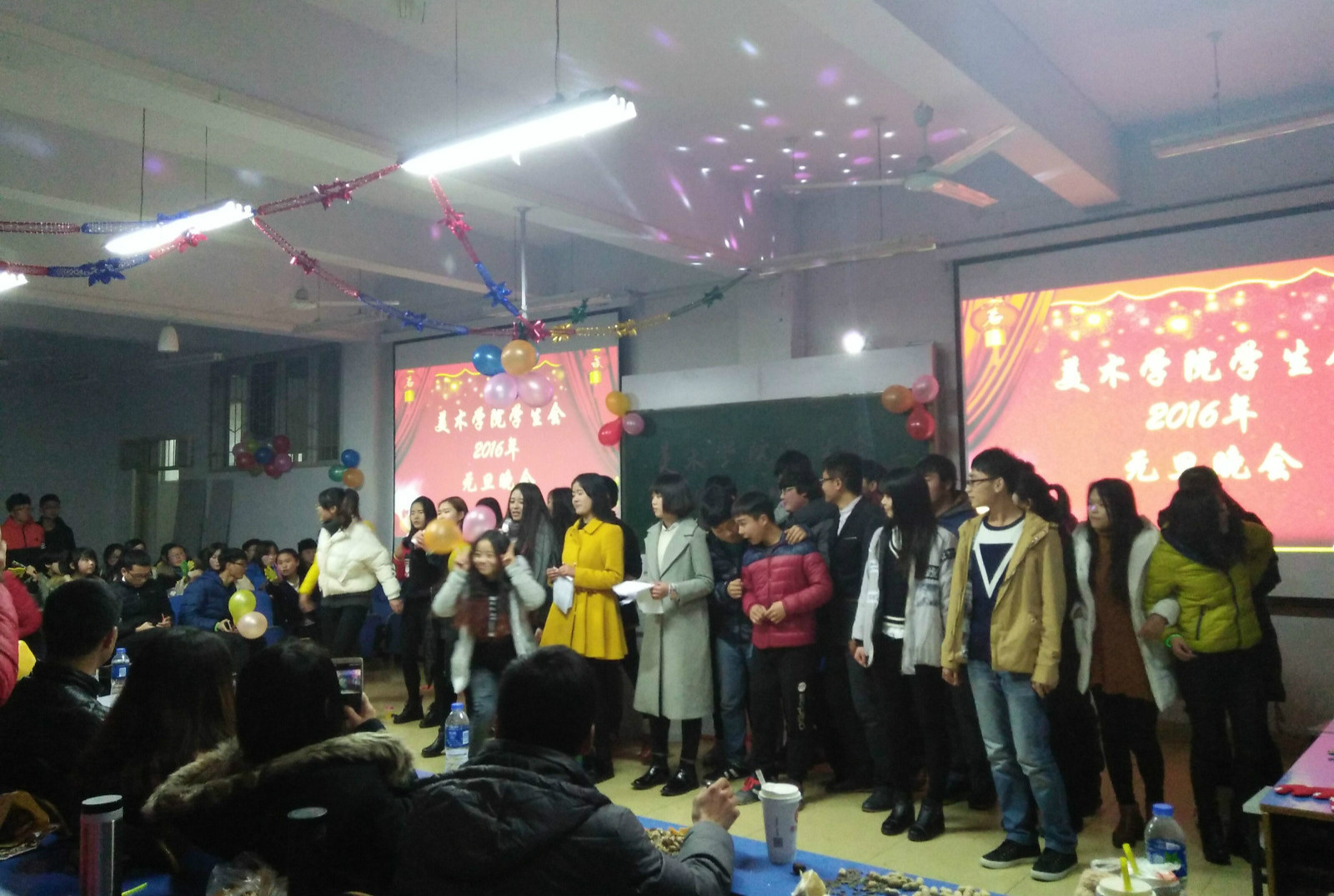 辞旧迎新欢庆元旦佳节。12月29日晚,公司员工会2016年元旦联欢晚会在艺术楼307盛装亮相。辅导员老师张锐,施远莅临晚会现场,与员工会全体成员共同观看了本次晚会。
