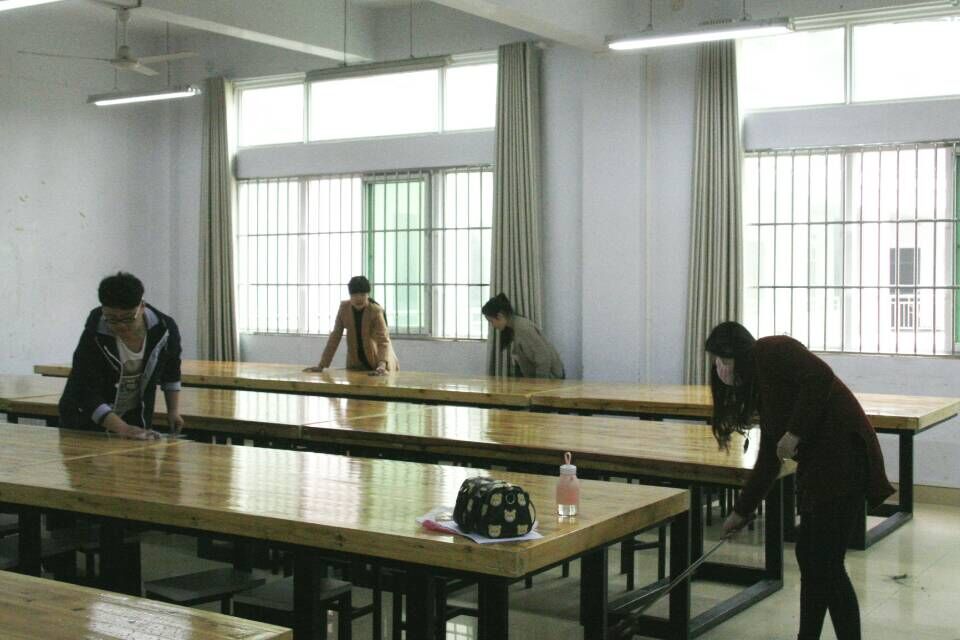 上午九时,志愿者准时到达指定区域参与义务活动。其间,员工会科学组织,志愿者分工明确、积极配合,充分发扬“不怕脏、不怕累”的精神。在清理车篷的过程中,志愿者将地面的垃圾清理干净,并将自行车合理摆放,使车篷秩序井然,焕然一新。在打扫教室的过程中,志愿者一丝不苟,将桌凳擦净并摆放整齐,并对每一个墙角及窗户缝隙都进行彻底的清理。经过一个小时的劳动,志愿者圆满完成了任务,获得领导和老师的一致好评。