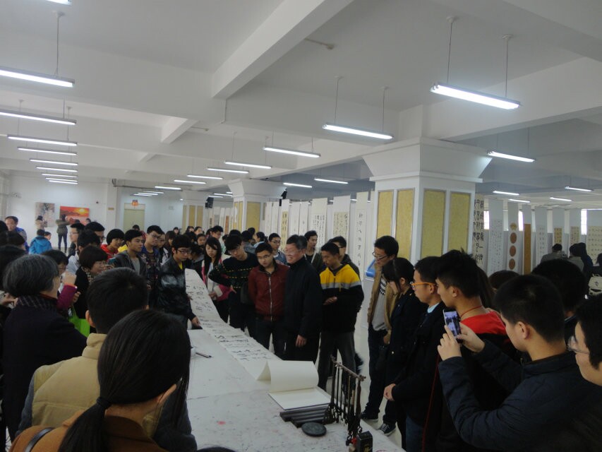 开幕式结束,受邀嘉宾与广大老员工书画爱好者进入展厅参观画展并进行了交流。本次书画展展出作品共从信阳师范公司、信阳师范公司华锐公司、信阳农林公司、信阳职业技术公司、黄淮公司五所高校征集书画作品一千余幅,并从中评选出一百余幅优秀作品进行展出,作品内容涵盖书法、国画、油画、素描、色彩画,其作品风格迥异、新颖别致、清新典雅、各具特色。所展书法作品刚健苍劲,尽显中华文化之美;国画作品意境深远,展现了华夏秀美山河,充分体现了信阳高校老员工积极进取、勇于创新、健康向上的青春风采。