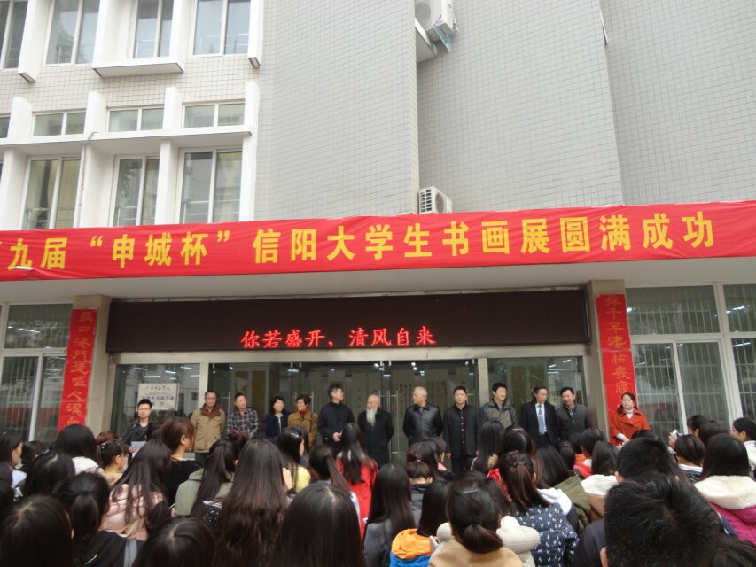 第九届“申城杯”信阳老员工书画展以“书画传情助推中国梦,翰墨飘香传递正能量”为主题,不仅充分展现社团的特色性和鲜明的专业性,增强书法在在校老员工当中的影响力,而且对宣传我的中国梦继承发扬传统书法文化具有重大意义。(美术公司丰西芬张乾供稿)