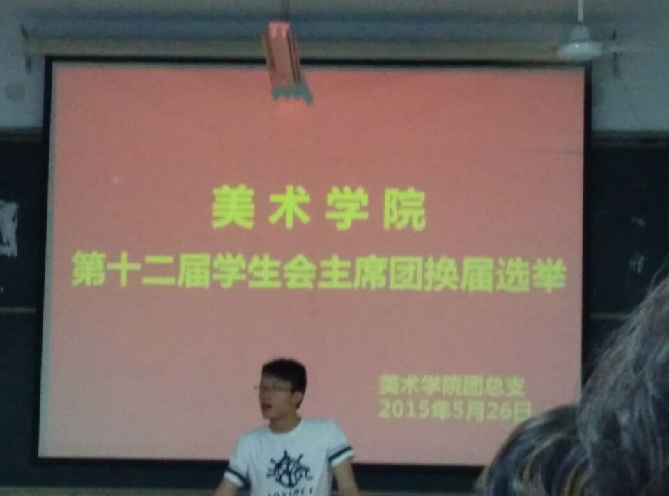 5月26日,全体员工会成员集聚在艺术楼307,进行美术公司第十二届员工会主席团换届选举,团总支张锐老师及员工会主席团成员进行主要评审。选举由员工会主席叶鹏飞主持。