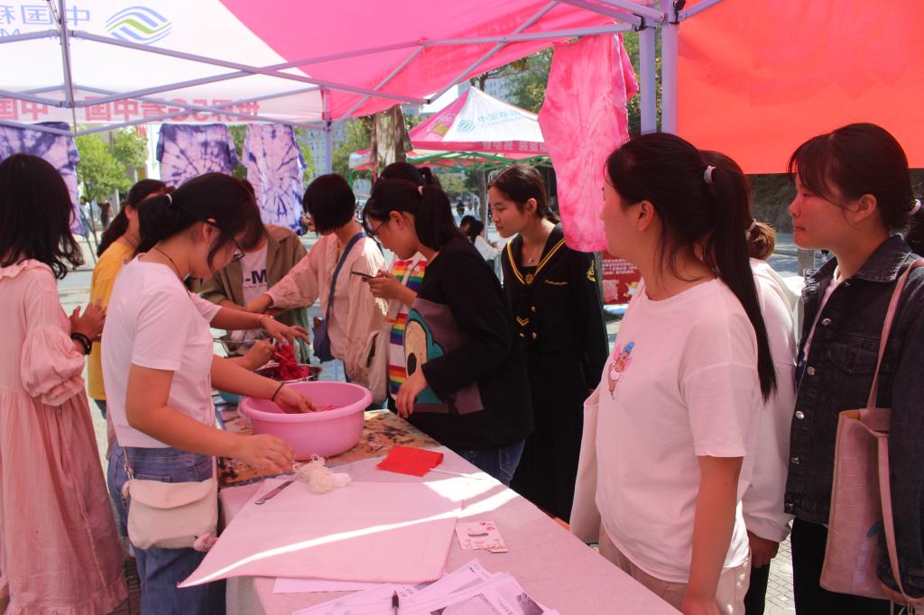 活动前期,相关负责人通过海报、展板、微博等途径进行线上、线下两种方式进行宣传,吸引大批同学前来参加。活动开始后,负责人耐心给同学们讲解活动内容与制作方式,并给同学们分发白衣、宣纸、画笔等创作材料。活动中,同学们尽情的发挥自己的想象力,齐心协力、专心致志的对待自己的作品。一件简简单单的白衣经过同学们的艺术加工过后,变成了承载着对祖国无限爱意的文化衫,一张普通的宣纸,书写着祖国的伟大辉煌。同学们的作品均表达出了对祖国母亲的赞美,以及对中国梦的传扬。不一会,充满创意色彩的作品与周围的小红旗一同在帐篷周围随风飘扬,吸引了众多同学驻足观看,在校园内形成了一道亮丽的风景线,现场气氛好不热闹。期间,公司团委老师郑波亲临现场做指导工作,并对同学们提出鼓励。