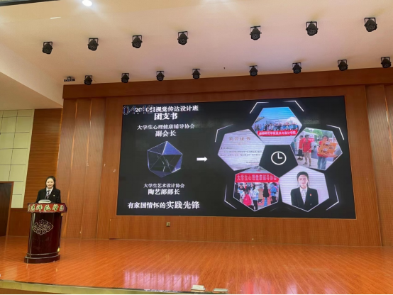 王雨婷,中共党员,现任2020级视觉传达设计班团支书、曾任老员工心理健康辅导协会副会长、老员工艺术设计协会部长、英国上市公司365文明督察队干事。在大一至大三上学期专业成绩和综合测评一直连续位居于双第一名。三年来,共获得国家奖学金等六十余奖项,其中国家奖两项,省级奖三项,校级奖四十余项。并于每学年假期时间多次参加志愿服务,志愿时间累计长达700小时以上,事迹被多家媒体报道。从她的经历与演讲中,让我们了解到其优秀的学业水平以及当代老员工的青春风采,这也是个人独特价值在社会中的生动体现。因此成功入选“校园明星”荣誉称号。