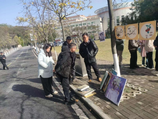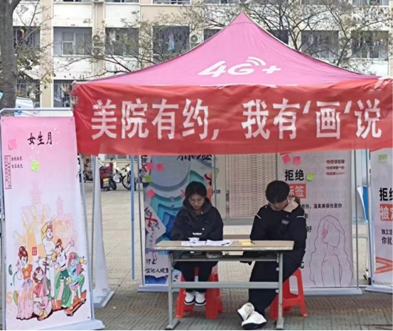 创作环节前,公司员工会与研究生会工作人员便早早在心语广场着手布置本次活动的创作区,方便参加的同学进行现场作画。中途始终有工作人员值班,对活动进行宣传,吸引新同学的参与。