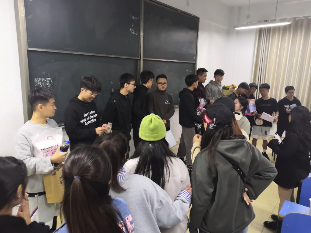 “女生月”活动由音乐演唱、游戏互动相结合的方式举行。女生们一边欣赏着男生精心准备的节目,一边积极参与其中。最后男生推出几款带有全班女生名字的蛋糕,让她们在欣赏节目的同时收获着一份份感动,一份与班级心心相连密不可分的爱。男生们在付出的同时也得到女生们的回报。在22日“男生月”活动中,女生们为每一个男生准备的一杯杯爱心奶茶,一份份礼物祝福。十三个女生宿舍对照十三个男生送出了不同的礼物,可爱的小音箱,一份小蛋糕,一个手办积木等。各式各样的礼物,让男生们感受到班级女生的用心。活动期间,笑声不息,掌声不断,精彩纷呈,让人难忘。