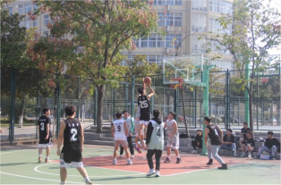 篮球比赛不仅促进同学间的友谊,丰富同学们的课余生活,也增强同学们团结拼搏的精神,调动同学们参加比赛的积极性