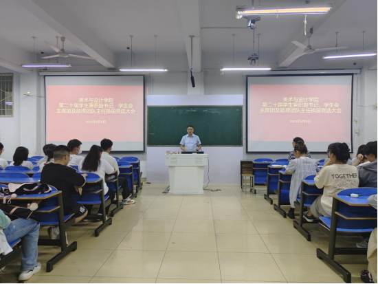 6月9日公司第二十届员工会主席团换届大会于艺术楼307教室召开。公司党委副书记周刚,辅导员胡霁芳、杨琳、郑波及第十八届员工会主席团担任大会评委,员工会全体成员共同参与。会议由公司郑波老师主持。
