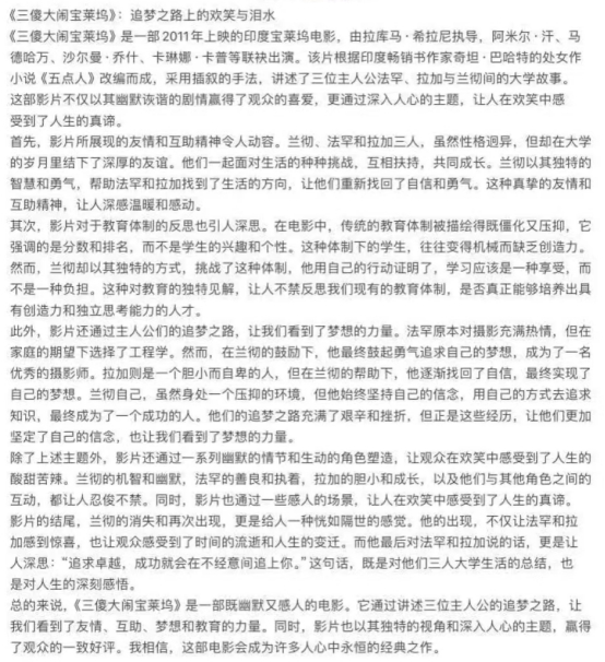 活动伊始,主持人蒋子媛热情洋溢地开场,强调了青春是追逐梦想的最佳时期,鼓励大家挖掘自身潜能,争做新时代有为青年。随后,全体与会人员共同观看了励志电影《三大傻大闹好莱坞》,影片以幽默诙谐的方式展现了坚韧不拔、勇往直前的精神风貌,引发观众强烈共鸣。观影后,同学们写下心得感悟,纷纷表示深受启发,将以此为契机,努力学习新知识、掌握新技能,提升自我。