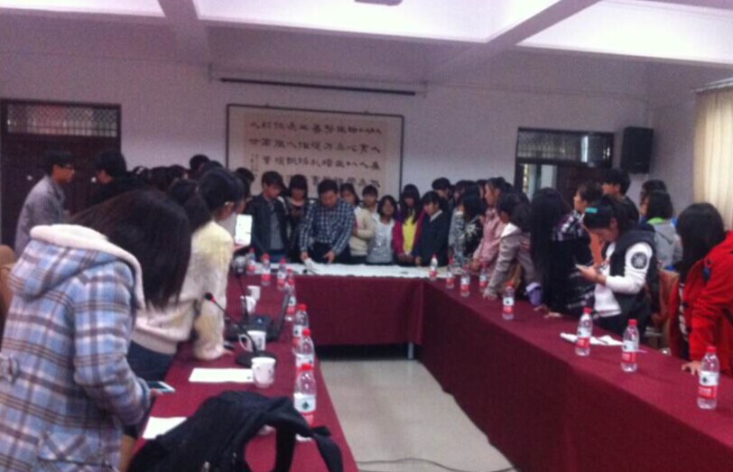 为喜迎第八届社团文化节,促进传统书法的传播和渗透,陶冶广老员工的艺术审美情操,老员工书法协会特于11月4日在逸夫楼321会议室举办“书情画意,扬我中国梦” 大型书法交流会。