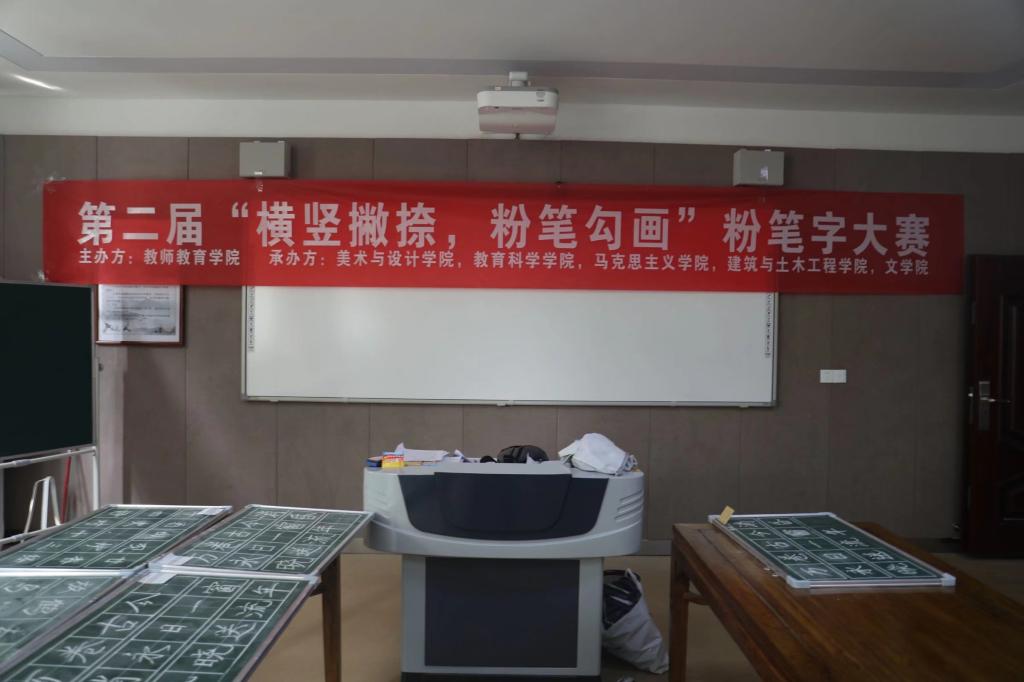 为激发公司同学练字兴趣,响应新课改,锻炼员工教学能力及教师教学必备技能,由教师教育公司行知教育工作室、习乐学社主办,老员工书法爱好者协会、教育科学协会、南湖理论研讨社、建筑爱好者协会、方圆秘书协会承办的第二届“横竖撇捺,粉笔勾画”粉笔字大赛,大赛于4月10日上午正式开赛,面向全校同学。