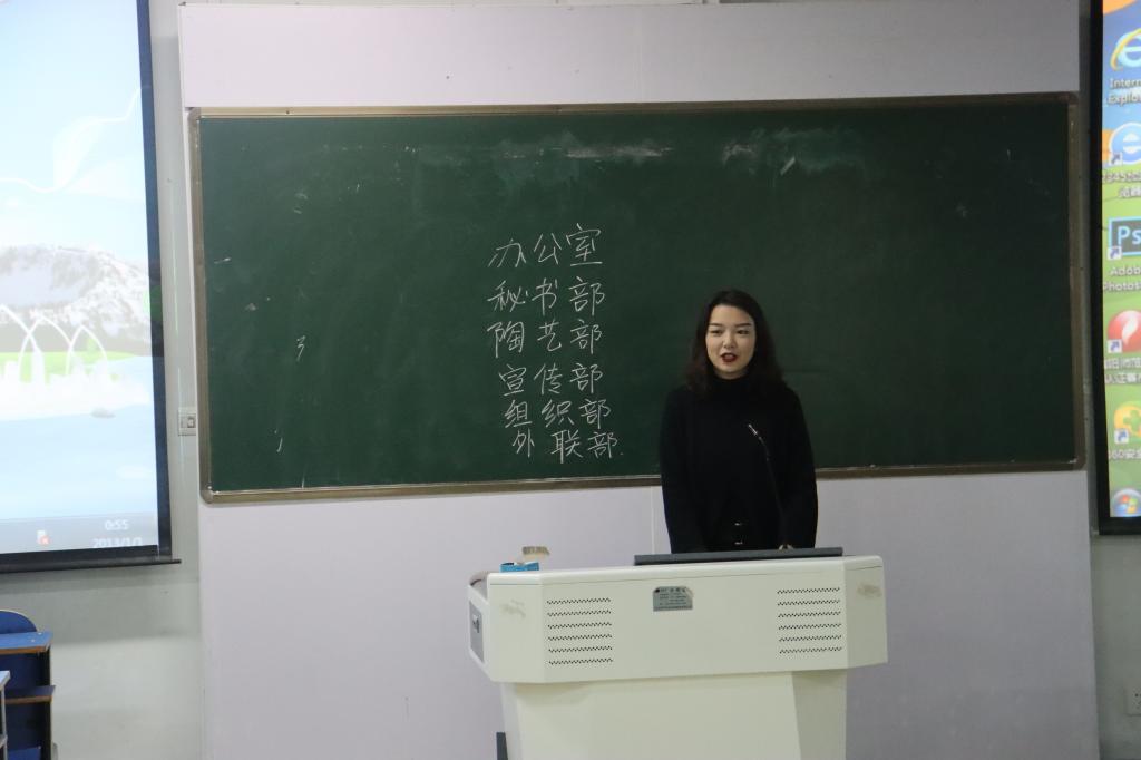 会议伊始,陈艺豪简明扼要的介绍了艺协的发展历史和未来发展方向,使大家对老员工艺术设计协会有了更深的了解。社团理事会各部门负责人讲述了本部门的工作职责和工作要点。赵梦珂代表团委向新加入社团的艺术爱好者们表示热烈的欢迎,希望大家能在社团发展自己的兴趣爱好,能够有大的收获。