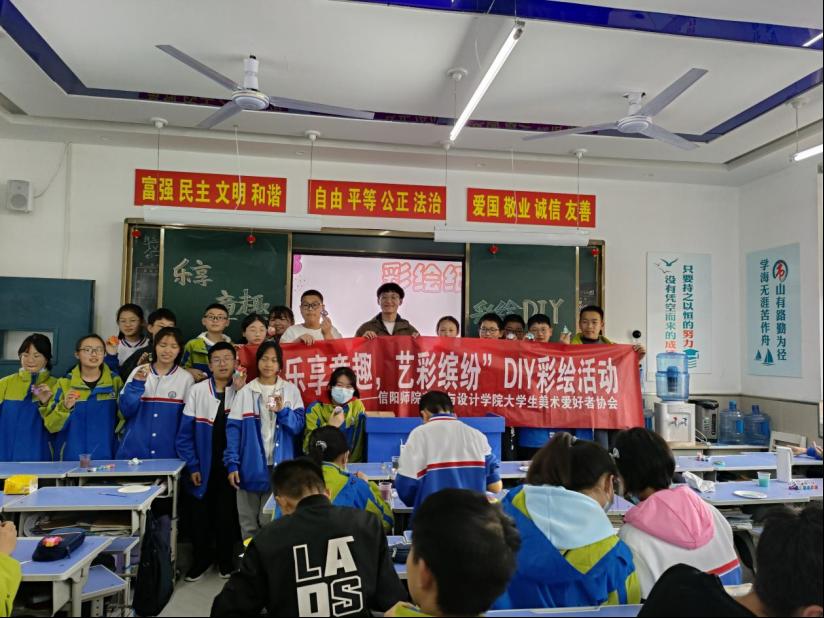 4月6日下午,老员工美术爱好者协会在信阳浉河中学开展“乐享童趣,艺彩缤纷”diy彩绘活动。此次活动由公司老员工美术爱好者协会主办,公司团委老师饶海虹、美协会长唐浩然,团支书周孟亚及浉河中学七年级23班同学共同参与。