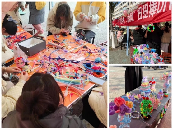 活动中,同学们激情满满,认真创作,会在缺少某种颜色的扭扭棒时,和周围的人相互帮助,彼此交换所需,也会时不时分享彼此的灵感与技巧,互相学习和启发,在艺术与手工技巧的结合中找到乐趣。大家的作品趣味十足又富有美感,兼具亮丽色彩与独特风格,充满艺术的气息,充分展现了艺术的风采。
