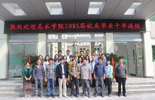 10月18日,在信阳师范公司建校40周年校庆来临之际,美术公司2005届员工在毕业十年后重聚母校,共话同学情,师生情,母校恩。信阳师范公司美术公司经理刘根货,党总支书记周子良,副经理张伟,党总支副书记李孝民,副经理邹东升,2005届授课老师及部分返校员工出席本次活动。