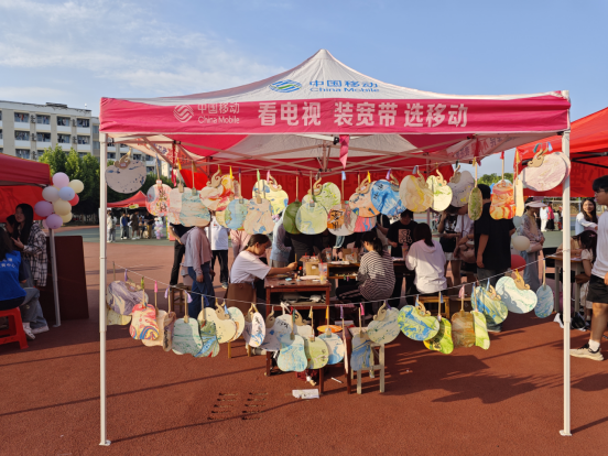 现场同学们热情高涨,踊跃报名参加,积极投入到漆扇制作的各个环节。在工作人员的指导下,同学们认真领会漆扇的制作技巧,从颜色选择到滴入漆料再到白扇入水附着花纹,大家每一步大家都认真细致,完全沉浸在漆扇制作的美妙工艺中。经过一番努力,一把把漂亮、别致的漆扇跃然而出。不一会200多件精美的漆扇作品摆满展台,这些作品或古朴典雅,或现代时尚,或气势磅礴,充分展现了同学们的创作才华和对传统文化的热爱,同时也缓解了同学们紧张的情绪,放松了自己的心情。