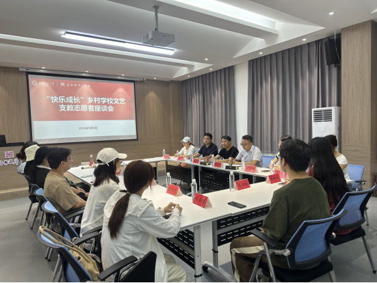 9月9日,在教师节即将来临之际,公司在实训楼艺言堂成功举办了一场意义非凡的“快乐成长”乡村公司文艺支教志愿者座谈会。经理邹东升、公司党委副书记周明成、辅导员郑波与已完成支教任务的4名志愿者和即将踏上支教新征程的8名新志愿者共聚一堂,分享经验,展望未来。