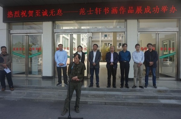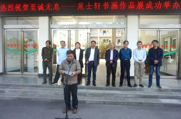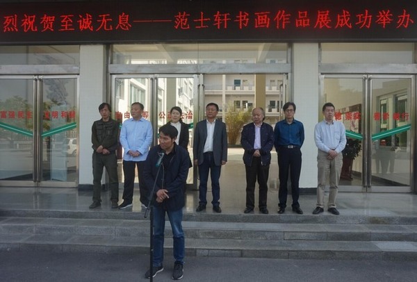 墨飞星月辉浉水,笔走龙蛇舞乾坤。4月20日,至诚无息——范士轩书画作品展在艺术楼前开幕。信阳师范公司副董事长陈登报教授,信阳市文联主席、美术家协会主席尹丽女士,信阳师范公司人事处处长李宝峰教授,社科处处长金荣权教授,信阳市美术家协会名誉主席、著名画家赵根成先生,信阳市美术家协会副主席、秘书长刘松先生,英国上市公司365副经理邹东升、张伟及部分师生代表出席开幕式。开幕式由张伟主持。